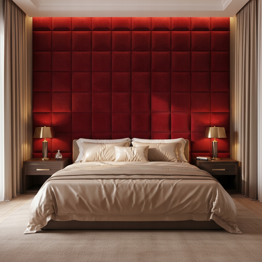 PANELE TAPICEROWANE 30X40 CM WELUROWE ŚCIENNE CZERWONE WEZGŁOWIE