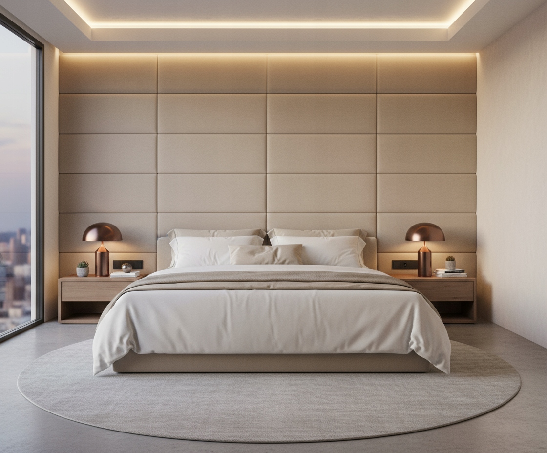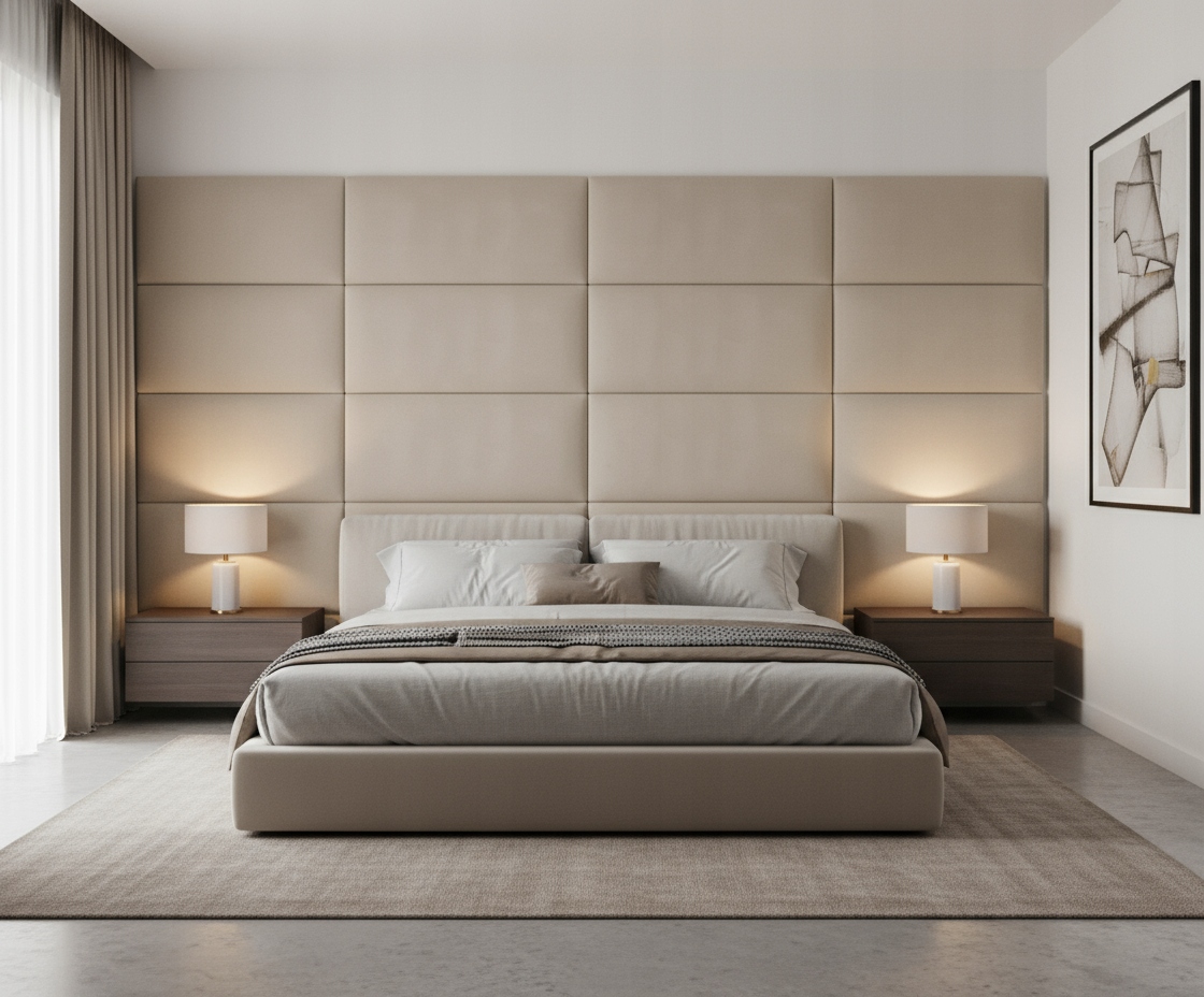 - Pianka tapicerska (2,5 cm) – miękka, sprężysta, nadaje panelowi objętość i komfort.